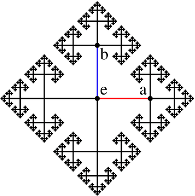 It is easily recognisable that this cayley graph is a fractal image, which can be produced with a simple recursive procedure in VRMath2's LOGO language.