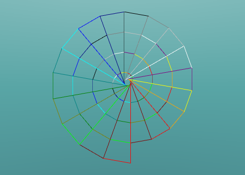 TO involute :rd :step :iter MAKE "start POS REPEAT :iter [ ;move along circle LT :step FD 2 * :rd * SIN(:step) ;find tangent RT 180-:step ;unroll string FD 2 * :step * 3.1415/180 * :rd * REPCOUNT MAKE "end POS ;connect end points SETPOS :start ;move back SETPOS :end MAKE "start :end BACK 2 * :step*3.1415/180 * :rd * REPCOUNT ;turn forward LT 180 NEXTCOLOR ] END ;involute (for gears) RESET CLEARSCREEN RU 90 PD ;involute radius step_angle iterations involute 1 5 18 PU SHOWALL