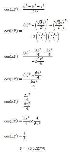 using the cosine rule, we can determine that the angle XYZ is 70.528779