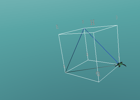 The next logical option would be to connect to either C, F or H, this would create a side diagonally across one of the faces. If we were to use 2 of these options, for example, connect AC and AF, to complete a triangle, we would connect CF, which is also the diagonal distance across a face of the cube, hence creating an equilateral triangle.