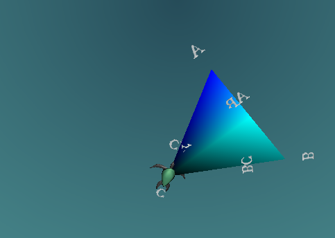A tetrahedron is made from 4 equilateral triangles, hence, to start, we need a process to create an equilateral triangle. Previous experimentation has revealed that a simple code will create an equilateral triangle.
