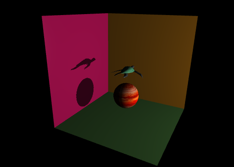 The three lights can create simulations of shadows and real world like lighting effects. Below is an example image of a point light.