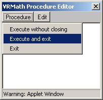 Note: The current implementation of VRMath does not include the 3D content you created in your project. It is recommended that you write procedures to keep all 3D content easy to be recreated. At the moment, you can only export the 3D content to VRML.