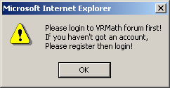 After you have registered, please login to VRMath forum when you are using VRMath. If you don't login, and you try to use any function in project menu, you will get a message like the figure below.