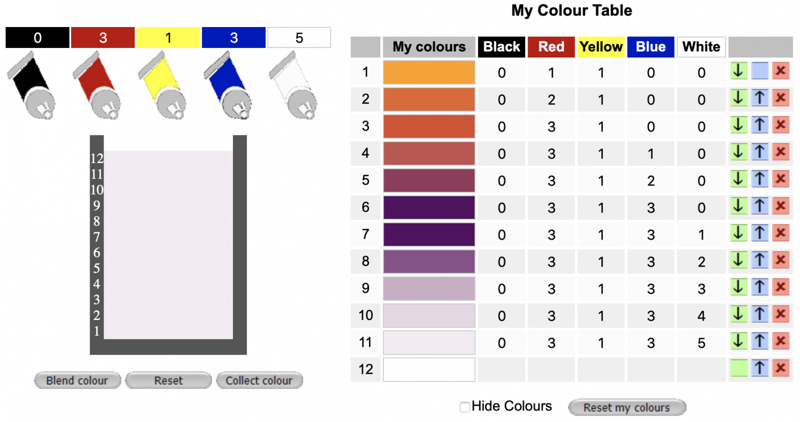 and if you like the colour you make, you can click on the Collect colour to add the colour to your colour table.
